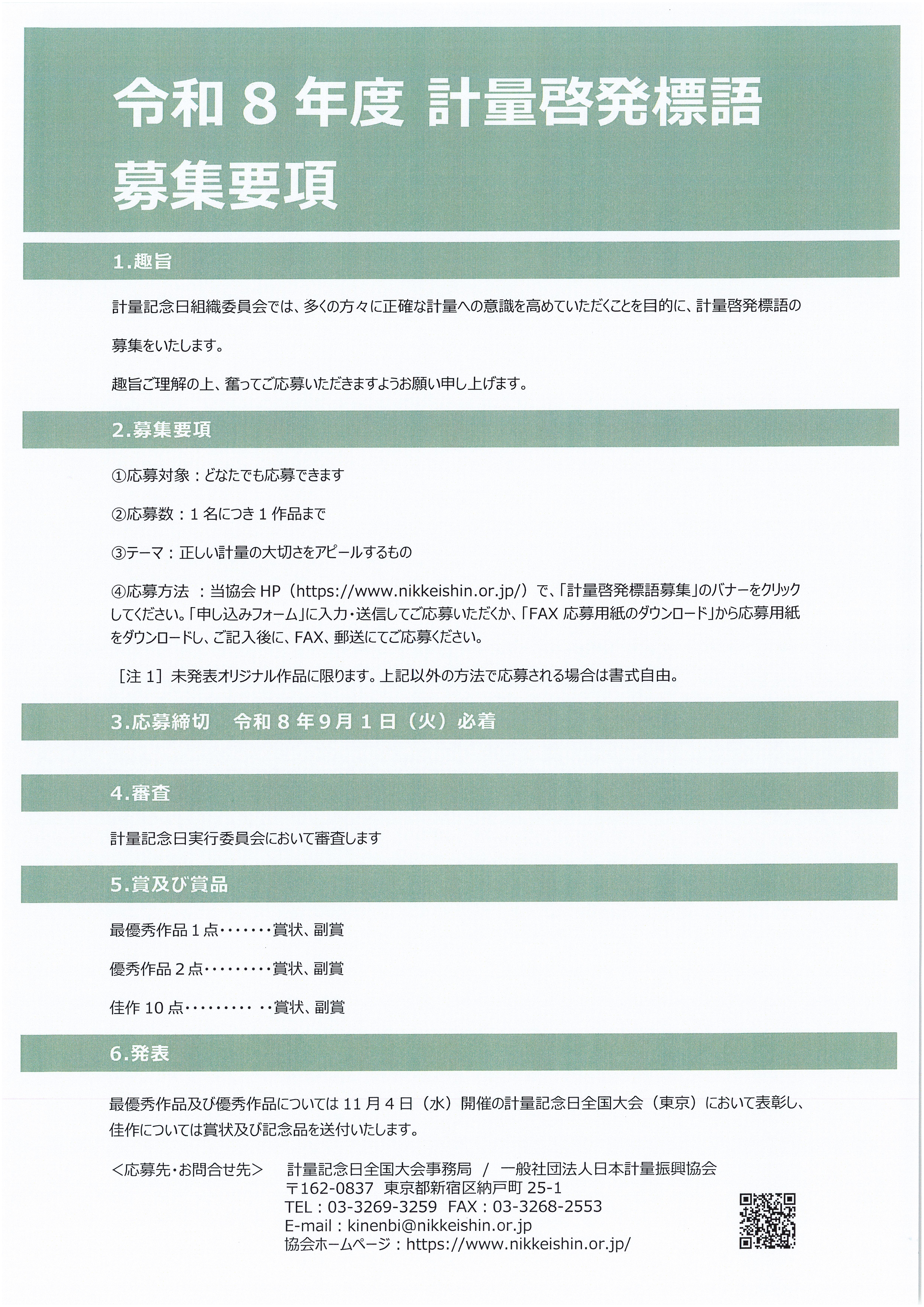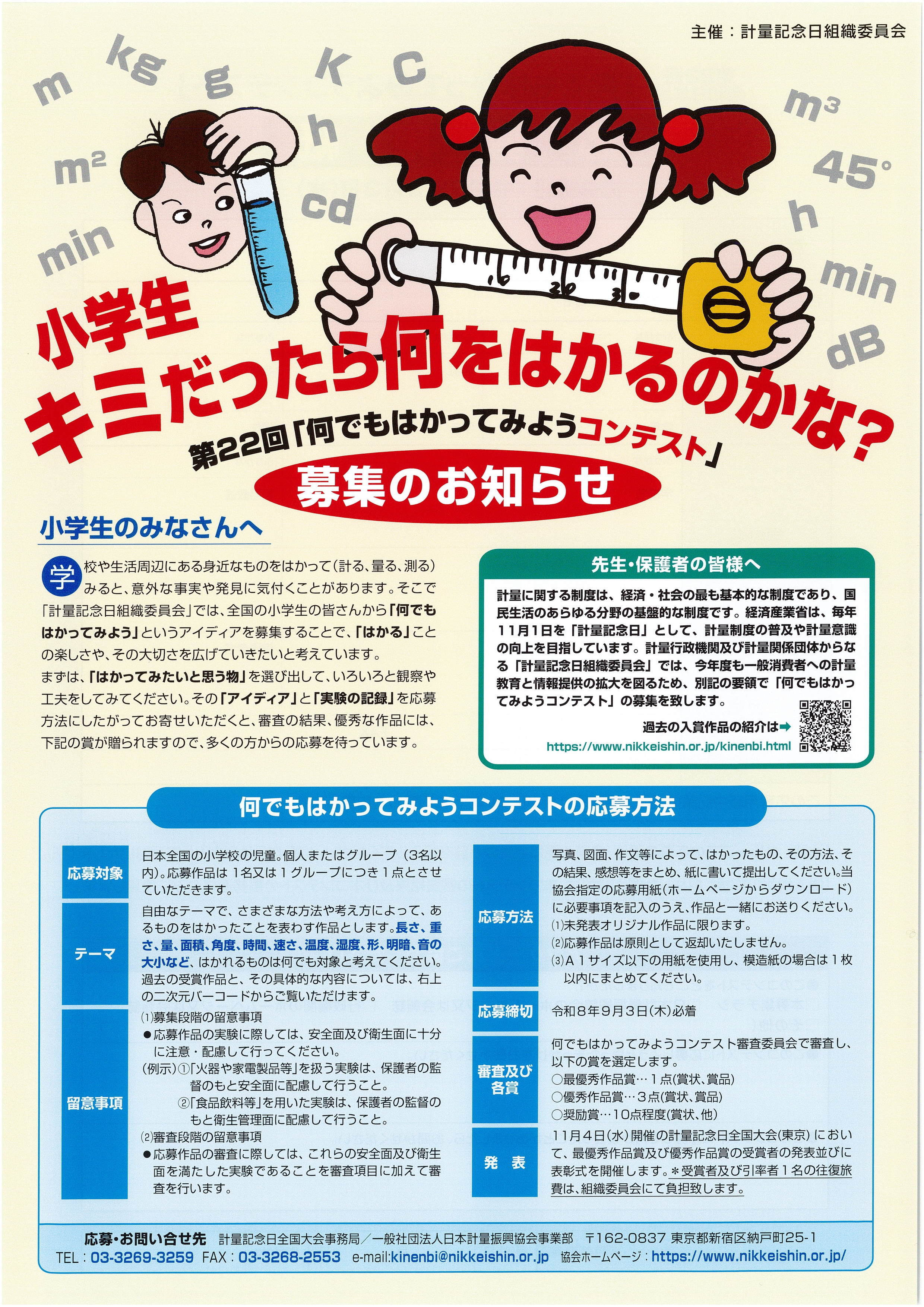 コンテスト詳細については 計量記念日全国大会事務局/一般社団法人日本計量振興協会 事業部 まで